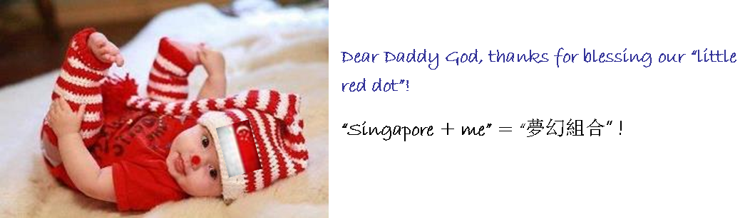 Our Father, who art in heaven, hallowed be thy name; thy kingdom come, thy will be done on earth as it is in heaven. Give us this day our daily bread, and forgive us our trespasses, as we forgive those who trespass against us; and lead us not into temptation, but deliver us from evil. Amen. Dear Daddy God, we thank you for your continuous blessing. To obey Jesus Christ, we will forgive those Overseas News Stations who had fabricated damaging reports on our Singapore Economy, our Competitiveness and broadcasted to the whole World on 13 May 2014. This is at least the 3rd major incident that the same people have created to cause damage to Singapore since 2012. The World Competitiveness Ranking 2014 published by the IMD World Competitiveness Center ( www.imd.org ) came at the right time to automatically rebut those damaging remarks. We are happy that we are ranked 3rd after USA and Switzerland. Dear Daddy God, help us not to be too concerned about our ranking but continue to work hard to be Useful Contributors to the International Communities and to create Harmony and Unity within our multi-racial society. Let all of us do our utmost best to love & support each other dearly as we move forward as a “little red dot” nation. Dear Daddy God, we thank you for sending your Angels to live among us and that is how we could always feel the music within our hearts and find Love, Joy & Peace within our beautiful Garden City. Help us also be generous givers of Your Love, Joy and Peace to ALL people of Goodwill who come to visit us and let them experience the same thing as what You have given us. Thank you Daddy God, we are very happy and we are grateful. Amen. The Singaporeans, 22 May 2014 |